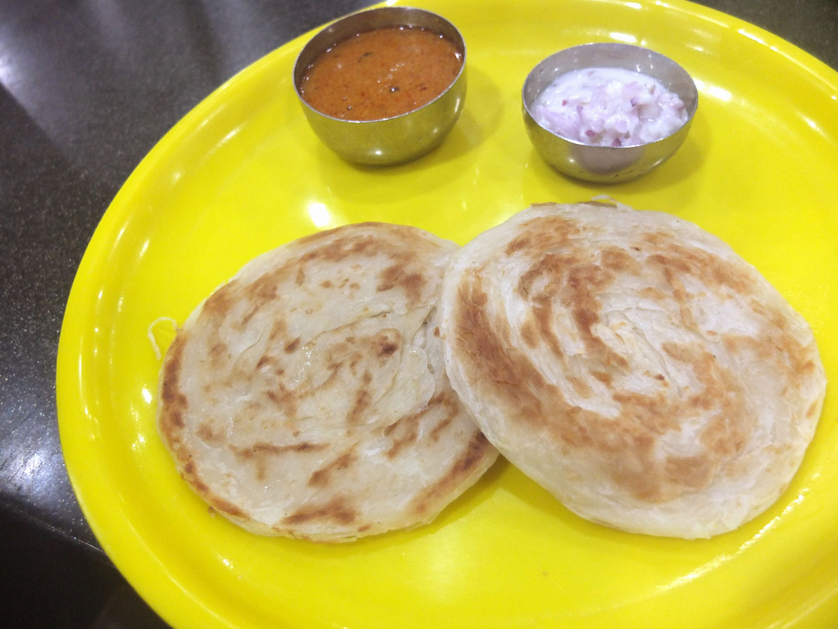 ジャガイモの入ったパラタなどもあるのですが、プレーンがおすすめ。具が入ると生地がデニッシュではなくモチモチ生地になります。なぜ? あと、店ごとの表記がバラバラで“Paratha”とか“Parota”とか適当なので、注文するときは毎回想像通りのものが出てくるか賭けでした(笑)。